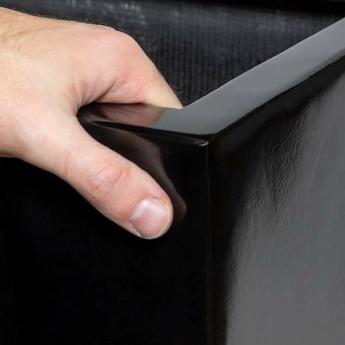 This stone composite high trough planter is a terrific feature in any garden, sure to provide a perfect setting for your favourite plants. Its trough shape means its ideal for displaying your favourite blooms, though it’s also well suited for creating a herb garden. The glossy black finish complements any combination of colouring and helps to emphasise particularly vivid blooms. The planter is made from an impressive stone composite that is highly resistant to the effects of weather, frost and UV while offering the visually pleasing impression of being made from real stone. A drainage hole helps to ensure that you don’t overwater your plants, while raised feet allow air to circulate beneath the planter, making sure that the roots stay healthy. An inner lining helps protect the planter from root growth whilst also allowing for retention of water in the soil .