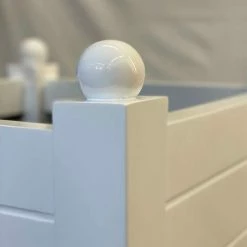 This bespoke handmade fibreglass planter will be a grand addition to any home. Fitted with globe spheres on each corner and faux panelling the planters will give your chosen planting a high class finish. The fibreglass construction makes the planter light-weight, frost-proof, tough and non-corrosive. The planter will be fitted with inner plate 40cm from the top to save having to fill te entire planter with soil. Available in a selection of 12 colours, you can vuiew these below and select your choice on the right. Please note: As these planters are made to order we are unable to accept returns or offer refunds.